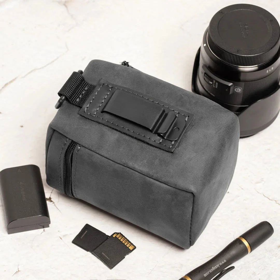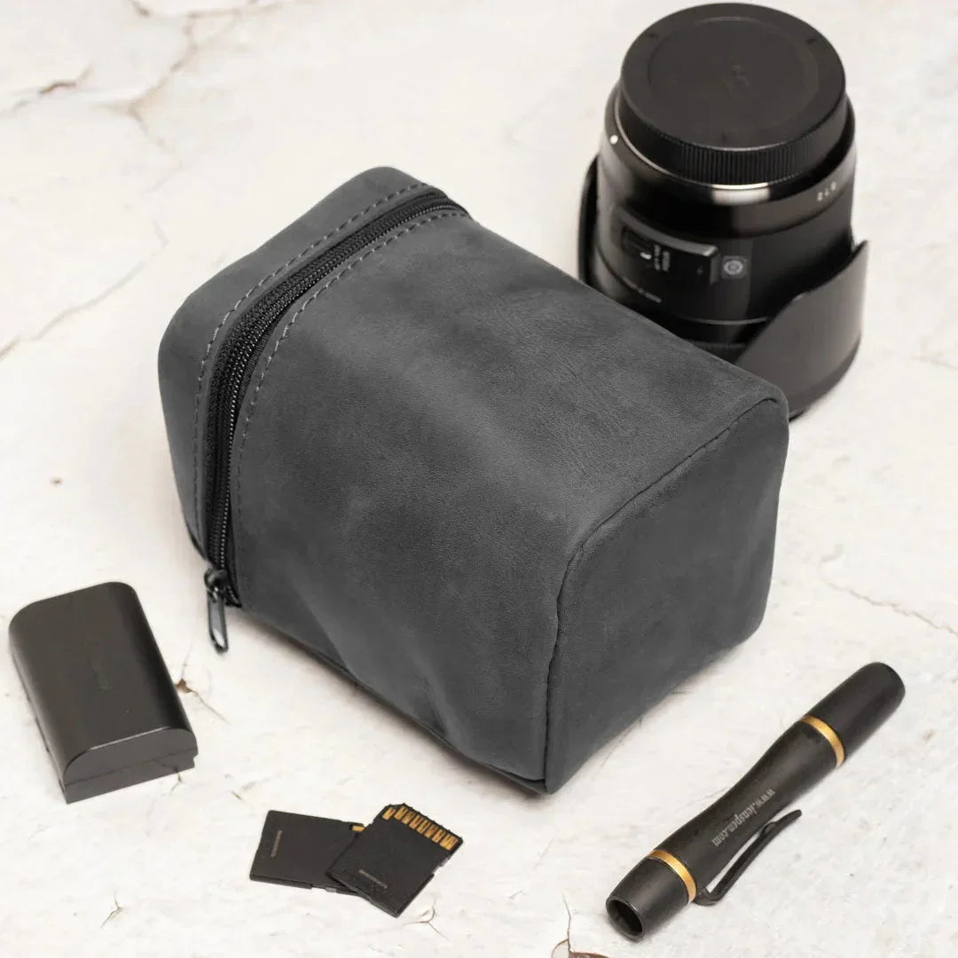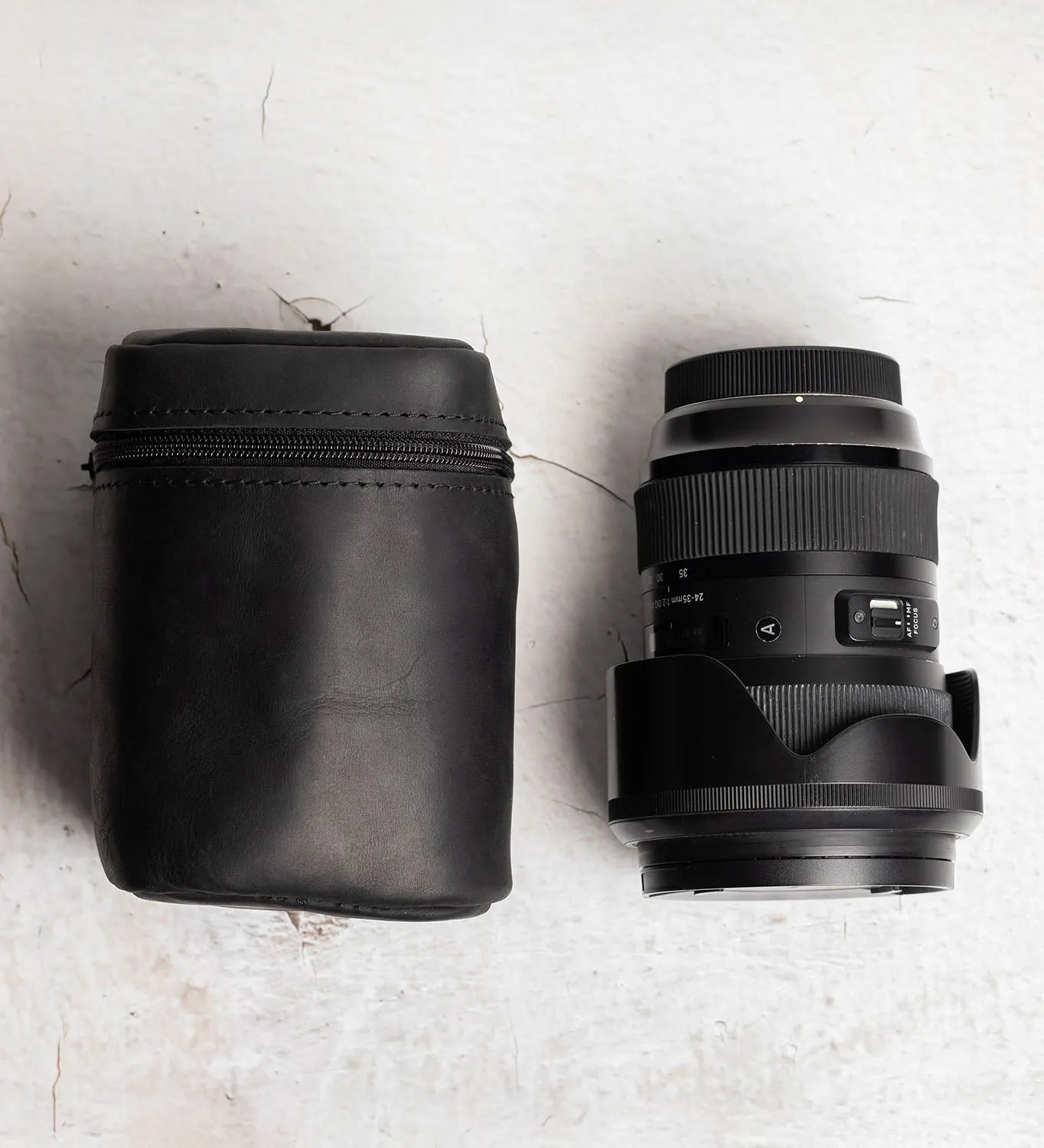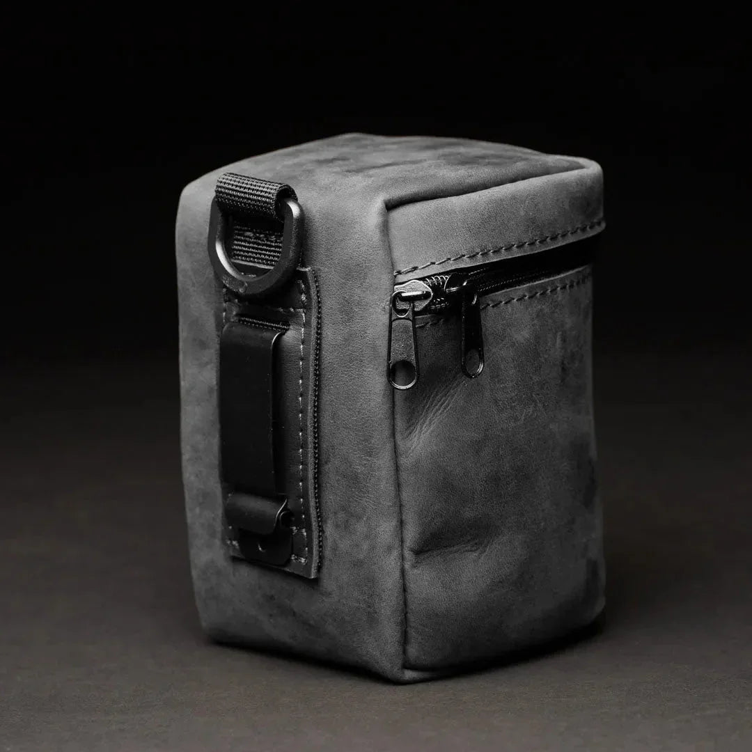 Distressed Leather Camera Lens Pouch | Black - Skin and Skin