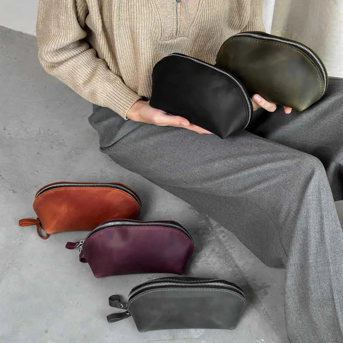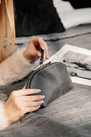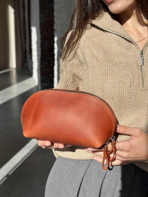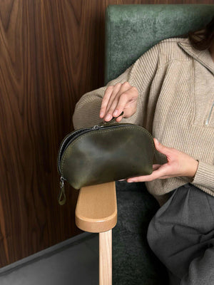 Додайте трохи автентичності у свою рутину чи подорожі з цією ручної роботи косметичкою зі шкіри Crazy Horse. Матовий, вощений фініш і природна текстура створюють ефект благородного старіння, а водночас забезпечують витривалість і зручність у використанні. Ідеальний аксесуар для тих, хто цінує натуральні матеріали, простоту й стиль поза часом.