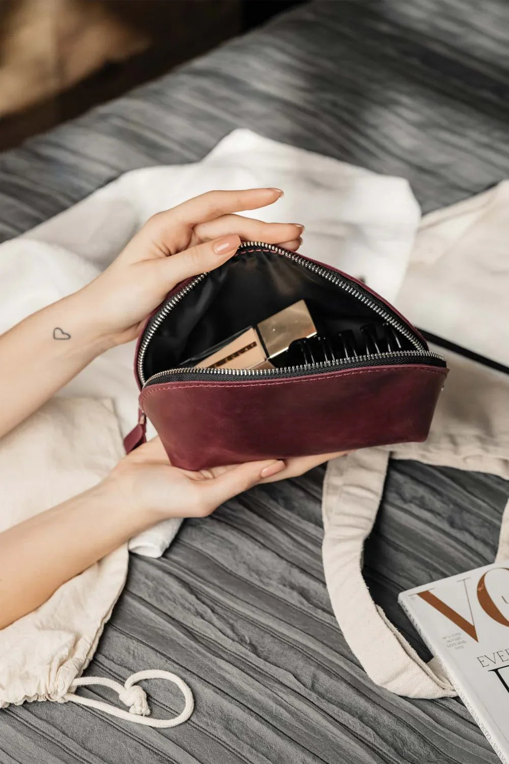 - Металева блискавка та захисна підкладка: надійно зберігають вміст, захищаючи косметику від випадкових розливів і подряпин усередині сумки чи валізи.