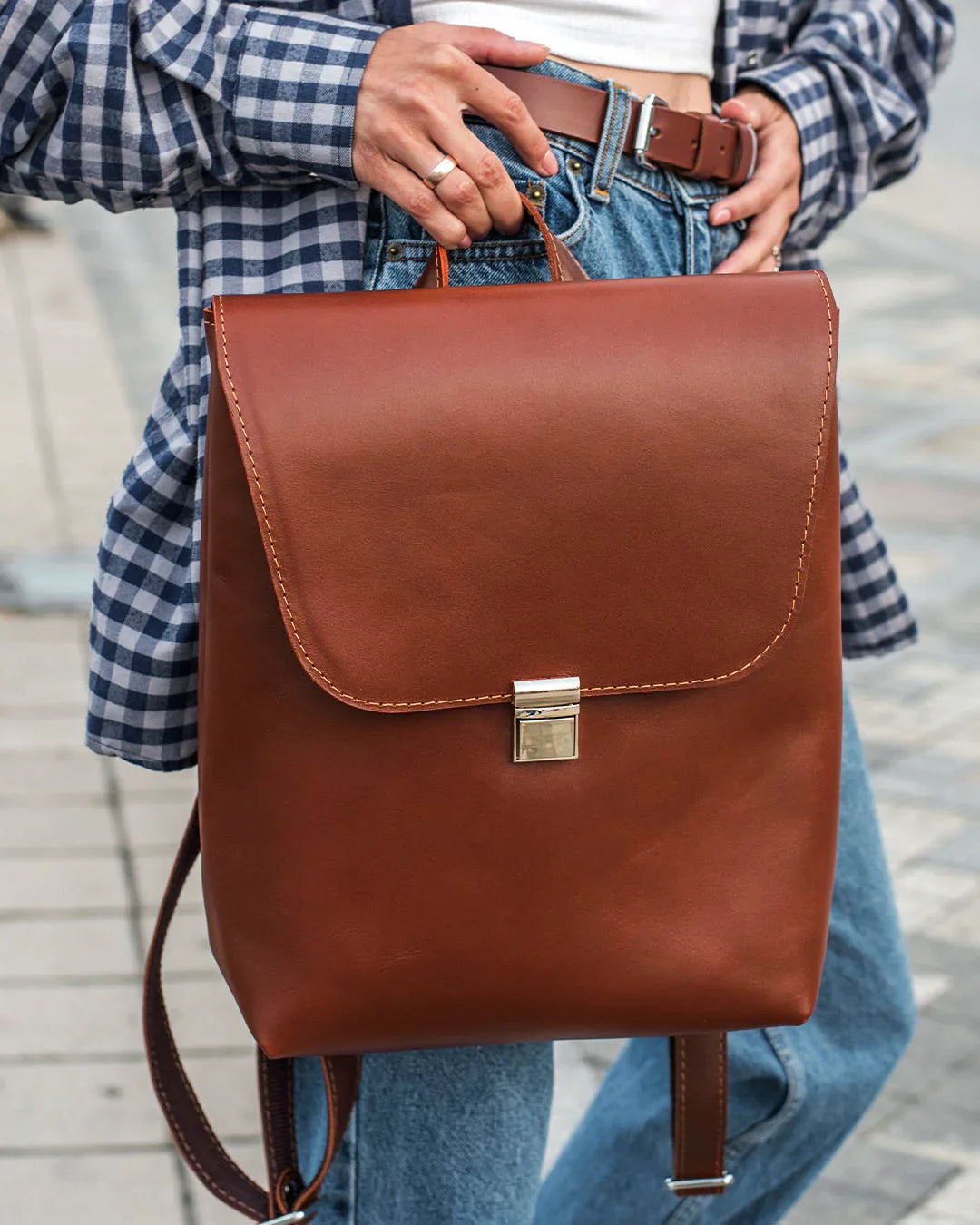 Рюкзак Ember – це витончена та мінімалістична щоденна сумка, виготовлена вручну з натуральної шкіри Top Grain. Створений для сучасних жінок, він вміщує ноутбук до 13.3″, документи формату А4, косметику та інші необхідні речі, зберігаючи при цьому елегантну, структурну форму.