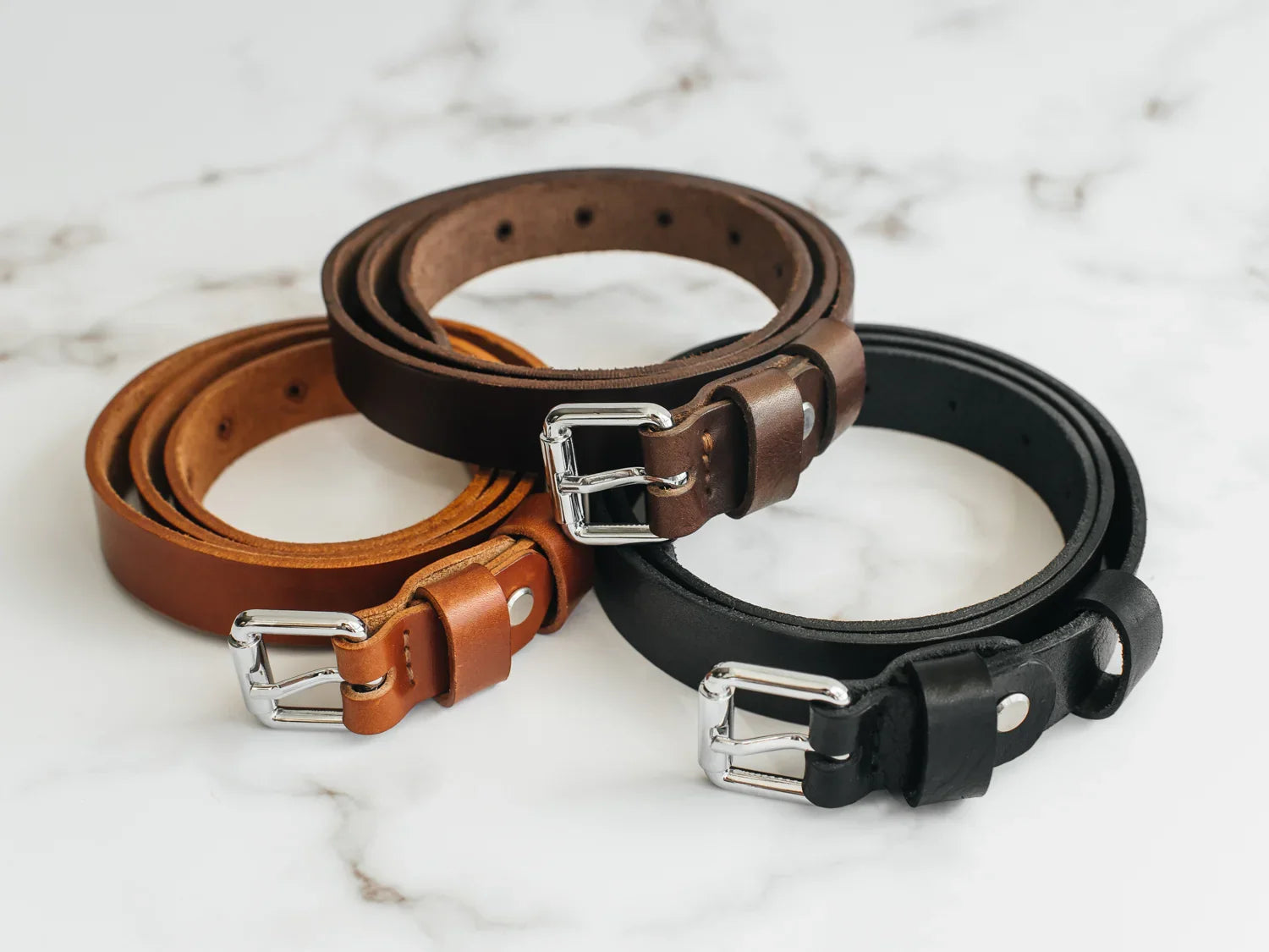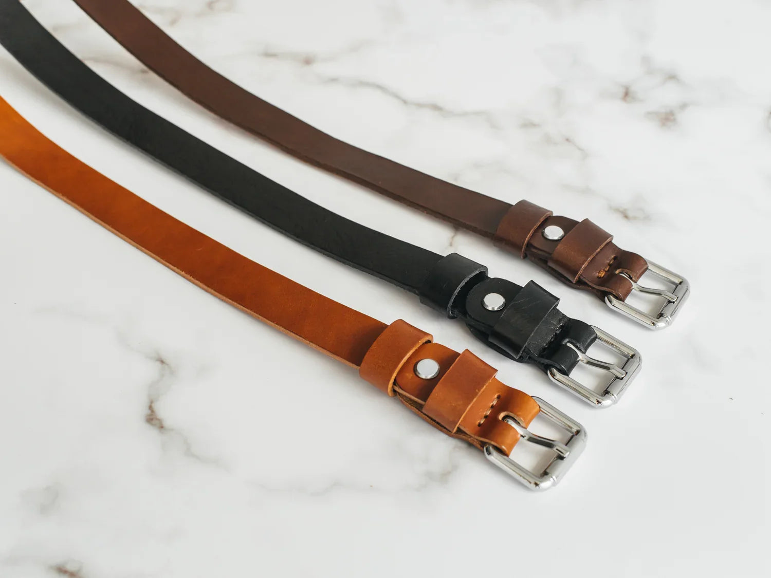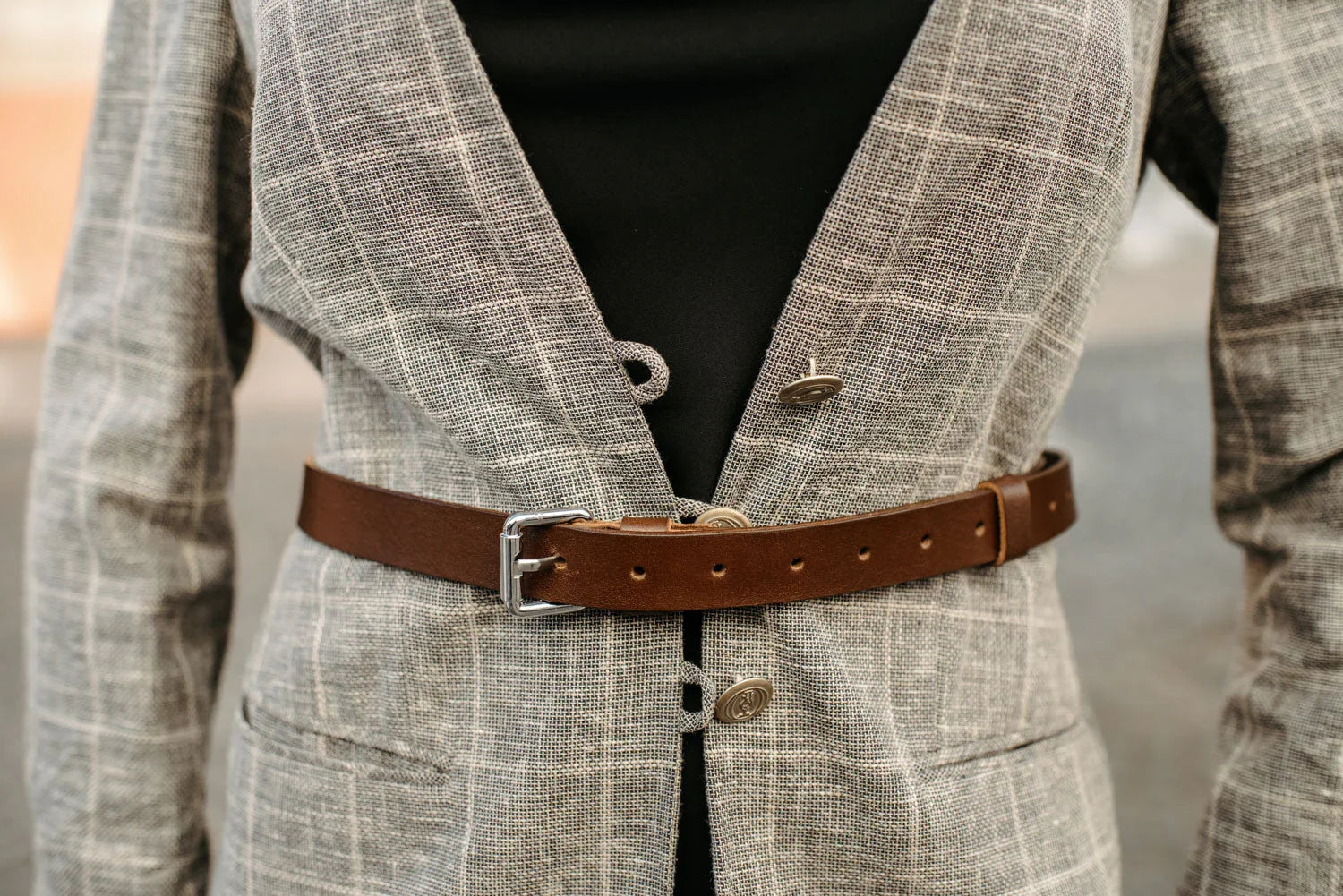 Ремінь виготовлений із цільного шматка шкіри рослинного дублення завтовшки 3.5–4 мм. Така шкіра зберігає природну щільність, витримує щоденне носіння та з роками набуває благородної патини. Краї поліруються вручну без прошивки – це підкреслює мінімалістичний силует і запобігає зношуванню.
