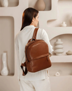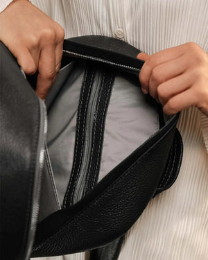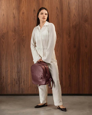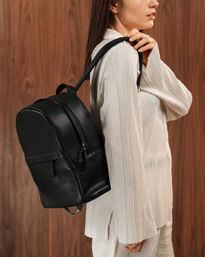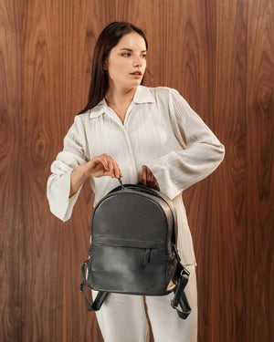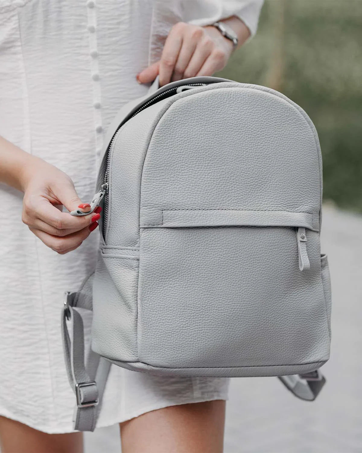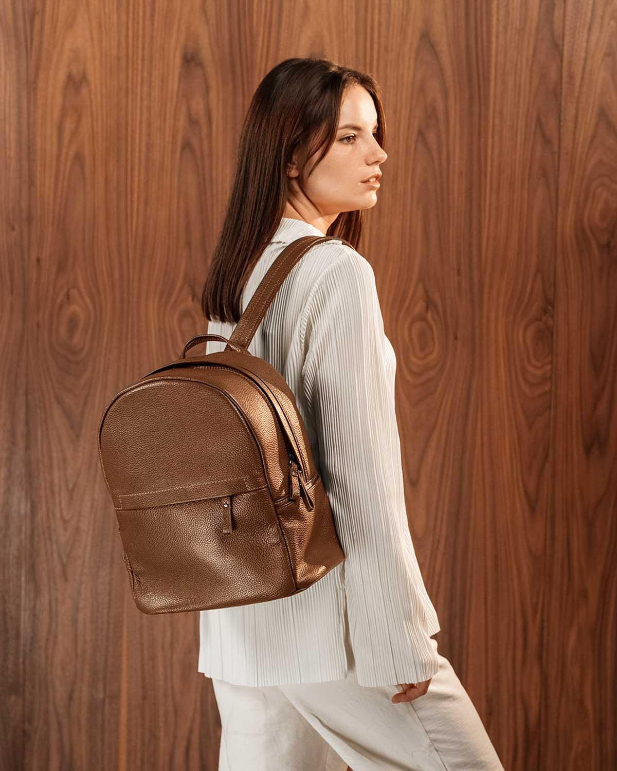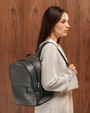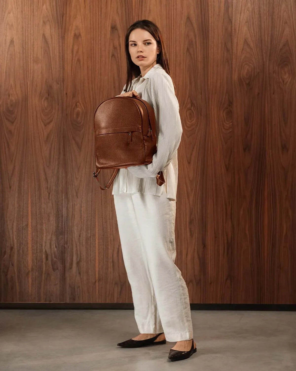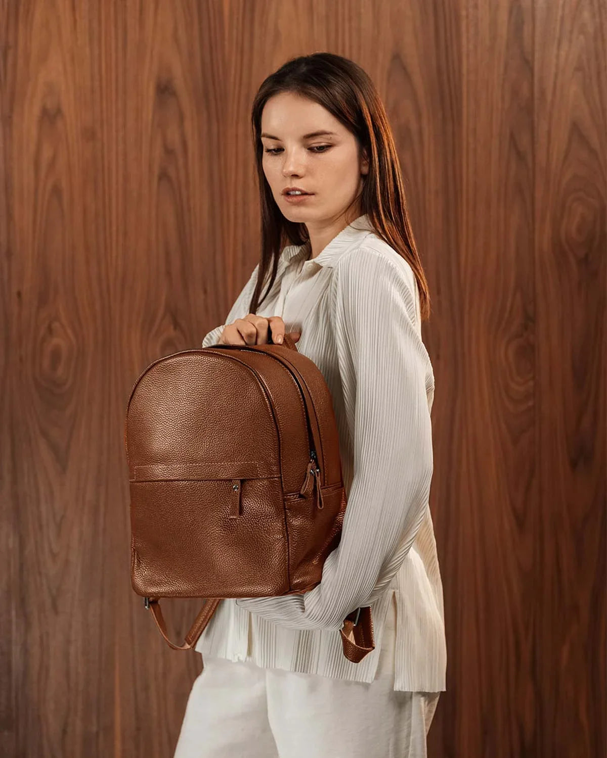 GraceBack – це свобода руху без втрати стилю. Каркасна форма тримає силует, завдяки чому рюкзак не зминається й не втрачає акуратного вигляду. Завдяки рівномірному розподілу ваги на обидва плечі GraceBack дарує відчуття свободи руху й легкості, яке неможливо отримати з сумкою на одному боці. Його зерниста шкіра з м’яким блиском додає текстури образу, не прив’язуючи до одного стилю – так само природно він виглядає поруч із піджаком і джинсами, поєднаними в кежуалі, як і з пальтом чи сукнею.