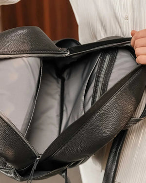 - Міцна шкіряна ручка зверху: щоб носити рюкзак у руці за потреби.