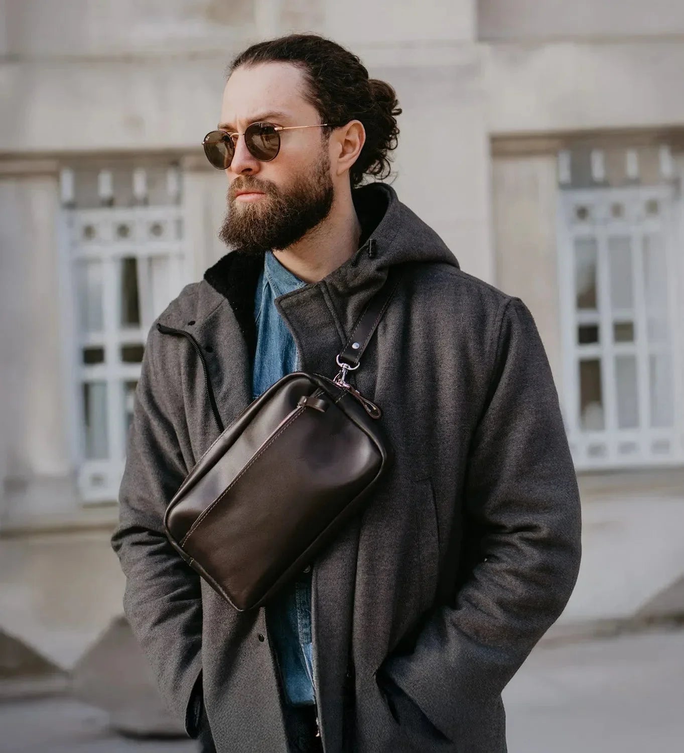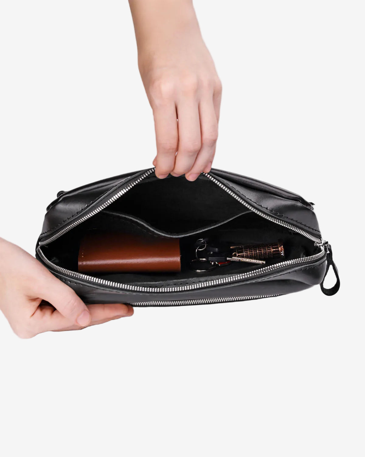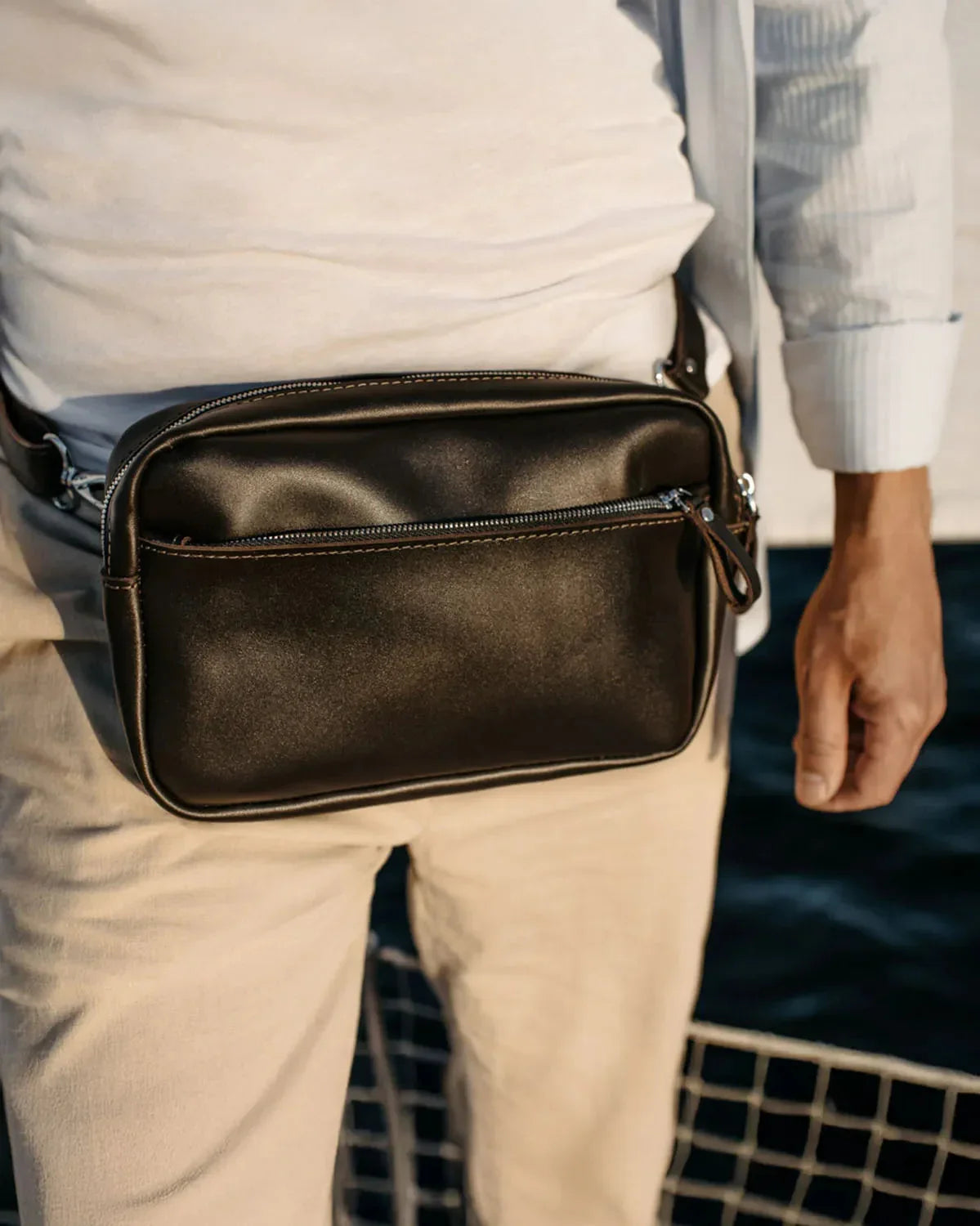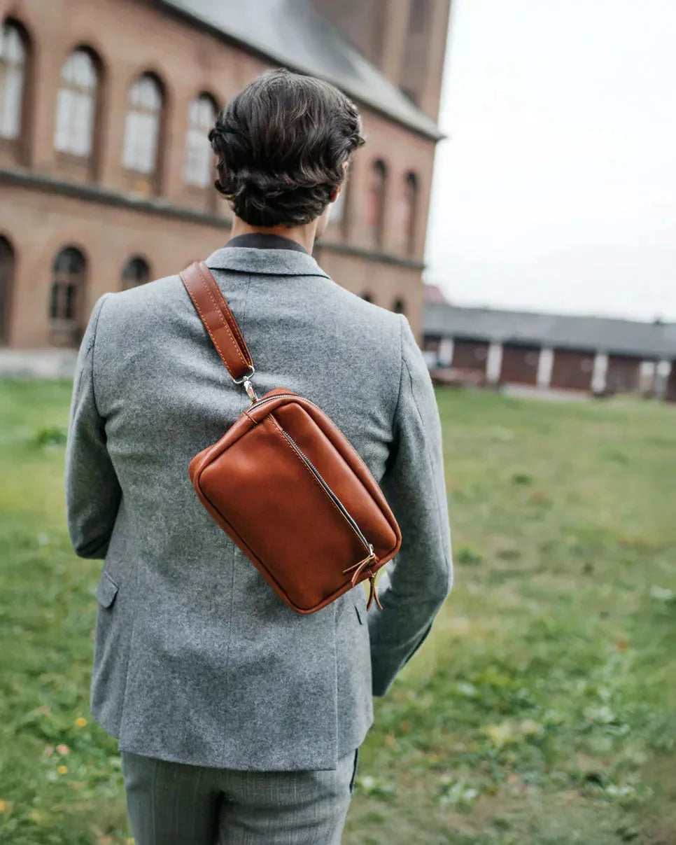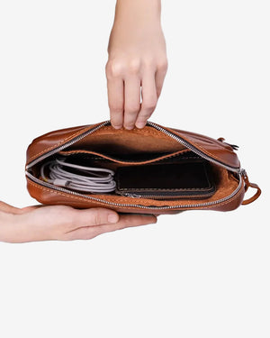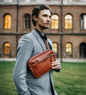 З одного боку, ця шкіряна має магічні здібності звільняти кишені. З іншого ж – від тягаря брати громіздкий рюкзак, аби вмістити всього лише кілька потрібних предметів для прогулянки. Тут знайдеться місце для гаманця, телефону, паверу, документів і навіть блокноту формату А5. Крім того, зробили її універсальною, щоб пасувала як чоловікам, так і жінкам, які однаково люблять практичність та мінімалізм у гардеробі.