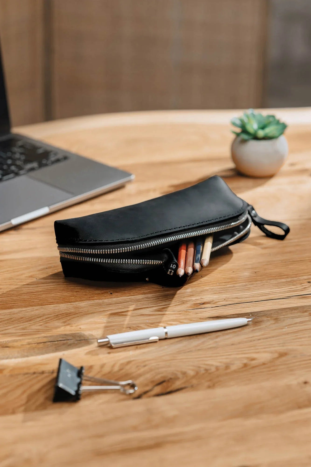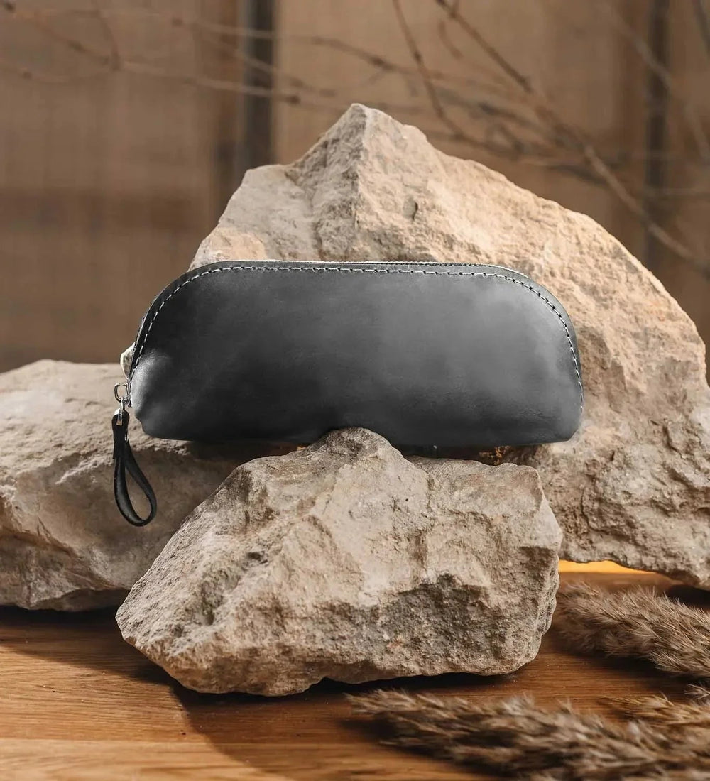 Ручна робота з міцної матової воскової шкіри Crazy Horse. Цей універсальний аксесуар створений для тих, хто цінує порядок, лаконічність і стиль. Використовуйте його як пенал, косметичку або органайзер для інструментів і дрібниць — він служитиме роками й набуватиме ще більше шарму з часом.